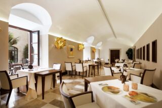 Su interior cautiva con sus cálidos tonos naturales en combinación con las vigas de madera del techo y crea armonía y las obras de artistas internacionales y mallorquines crean un carácter individual.